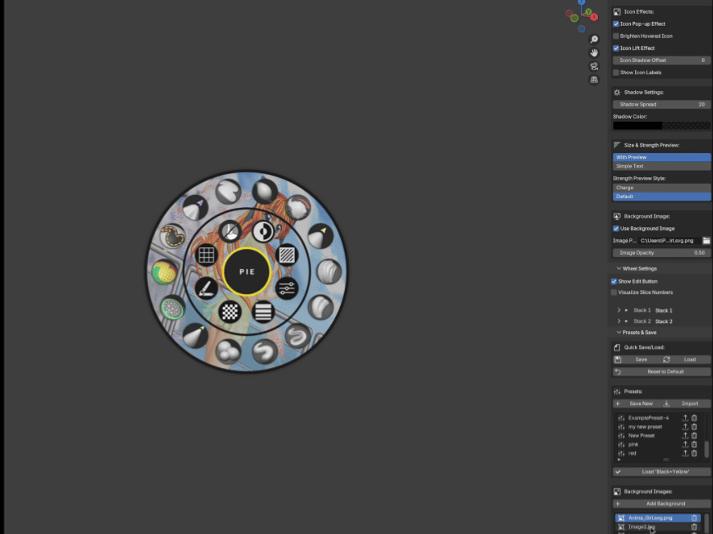 1. Customize Everything: Adjust all your colors, brushes, slice layouts, hotkeys, and other settings in the N-panel until the pie menu looks and feels exactly how you want it.