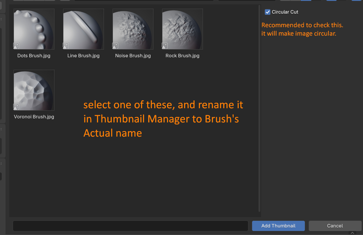 • The addon matches icons based on their filenames (e.g., the "Draw" brush looks for Draw.png, Draw.jpg, etc.). If you have renamed a custom thumbnail file, you will need to re-assign it in the N-Panel > Glyph > Wheel Settings.