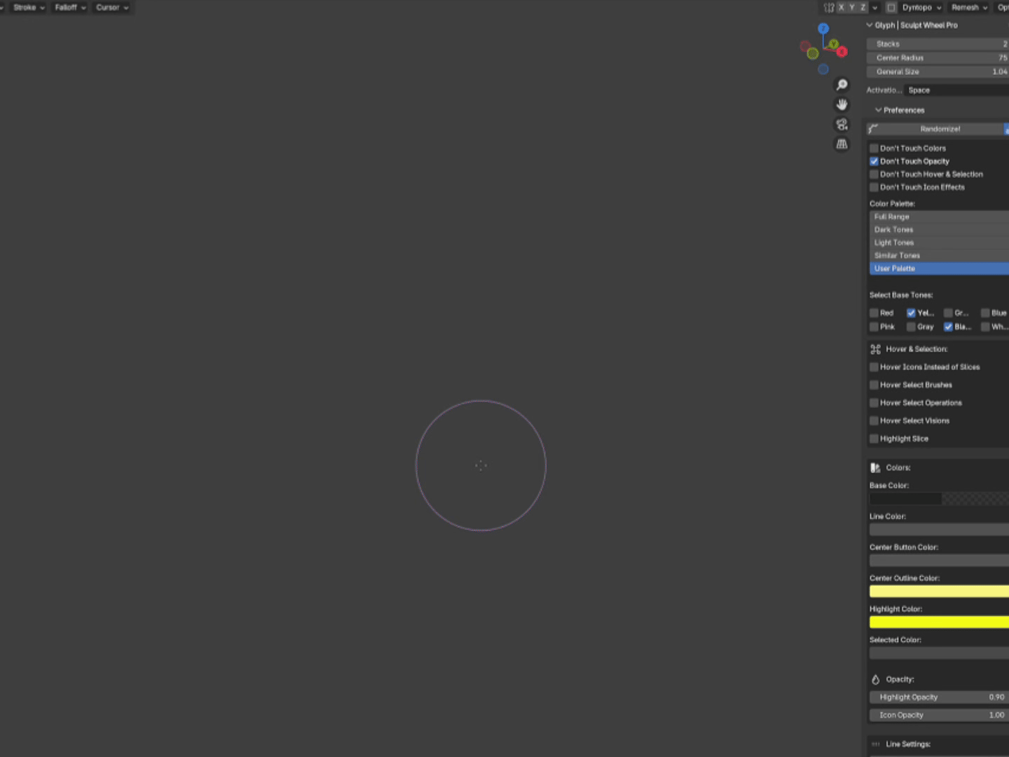 • Simply open and close the Glyph pie menu one more time. The addon is designed to restore the brush outline's visibility every time it closes cleanly.