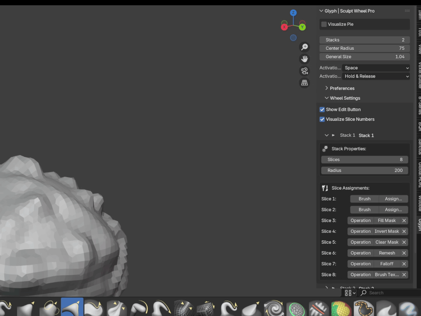 • Open the Glyph > Wheel Settings panel to increase the Slices for any individual stack, creating more slots.